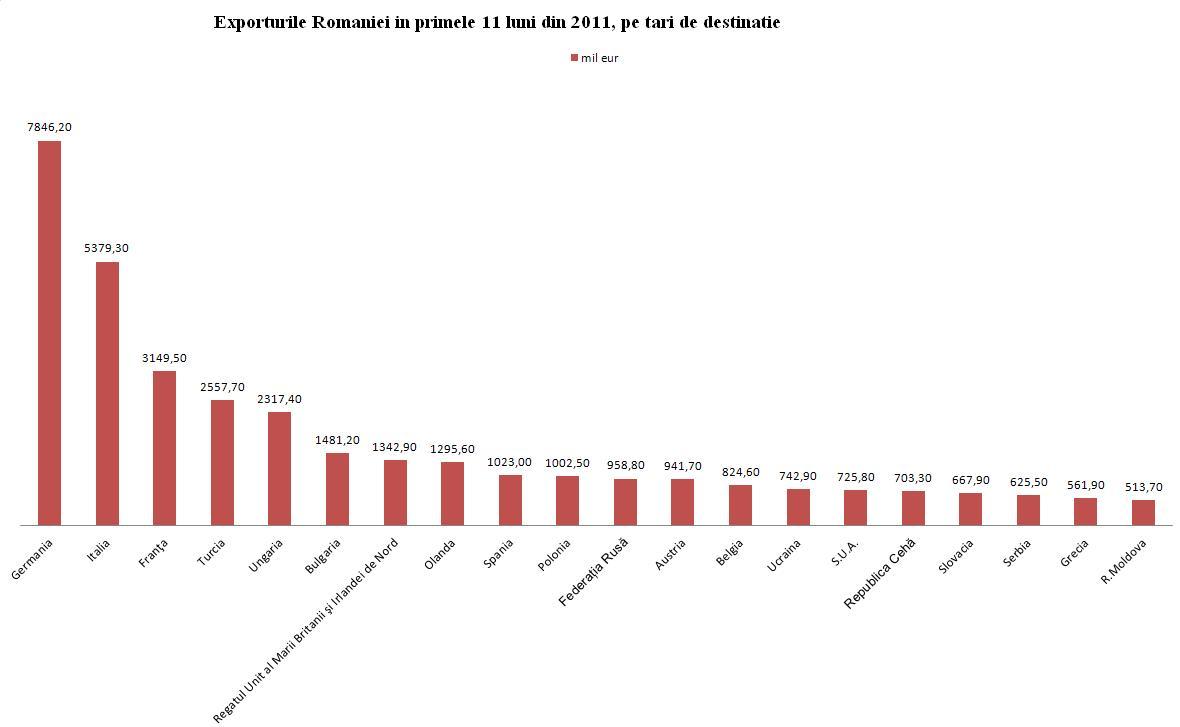 Exporturile ar putea avansa cu 4-5 miliarde euro în 2012, însă ritmul anual de creştere va fi mai redus decât în anul care tocmai a trecut, potrivit reprezentanţilor Asociaţiei Naţionale a Importatorilor şi Exportatorilor din România (ANEIR). De asemenea, exporturile realizate de industria auto din România vor creşte la 11 miliarde euro în 2012, de la 10,3 miliarde în 2011, a anunţat vicepreşedintele Dacia Renault, Constantin Stroe.