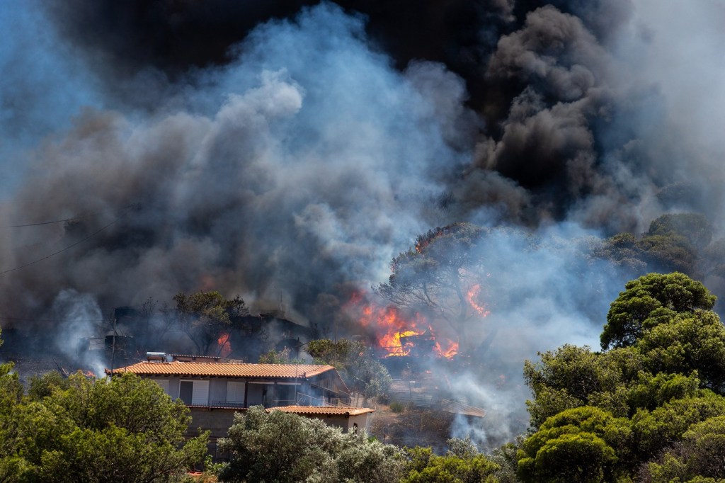 Un alt incendiu într-o comunitate din Stamata, la nord de Atena, a fost lichidat luni dimineață, după ce devastat o pădure de pini și a inundat orașul cu fum. Nicio casă nu a ars, dar un localnic de 45 de ani a suferit un atac de cord și a murit.