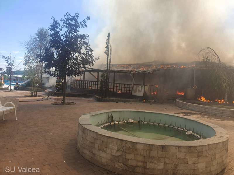 Ulterior, ISU Vâlcea a anunțat că flăcările s-au extins pe o suprafaţă de 978 de metri pătraţi, distrugând o sală de evenimente şi un bloc alimentar, în proporţie de 80%.