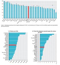 Putem compara, de asemenea, suma veniturilor guvernului de ţară pe baza veniturilor colectate pe cap de locuitor. Această metodă oferă o estimare a nevoilor de servicii publice, pentru că fiecare persoană este un pacient, student sau potenţial client. Luxemburg şi Norvegia sunt în mod clar in frunte (tările nordice tind să fie peste medie, în timp ce ţările din Europa Centrală în comparaţie colecta mai puţine venituri pe cap de locuitor). Doar două ţări (Republica Cehă şi Coreea) au crescut in mod real veniturile anuale privind administraţiile publice cu mai mult de 5% între 2000 şi 2006. În medie, veniturile guvernamentale pe persoană au crescut cu 2% pe an în ţările membre ale OCDE. (in imaginea alaturata vedeti cu ochiul liber alocarile bugetare in diferite stata, ca pondere in PIB).