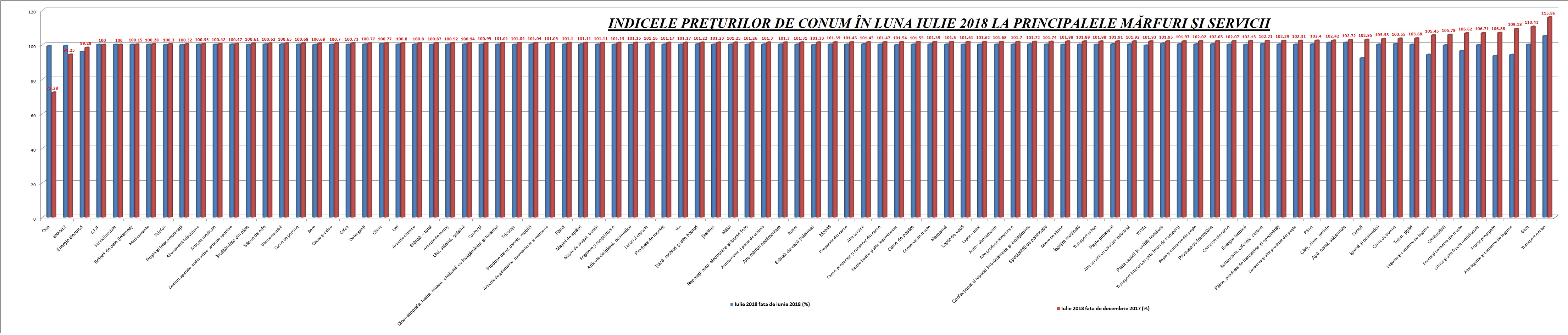 Mai jos, indicele prețurilor de consum din iulie 2018 fața de iunie 2018 și față de iulie 2017. Click pe imagine pentru a o mări: