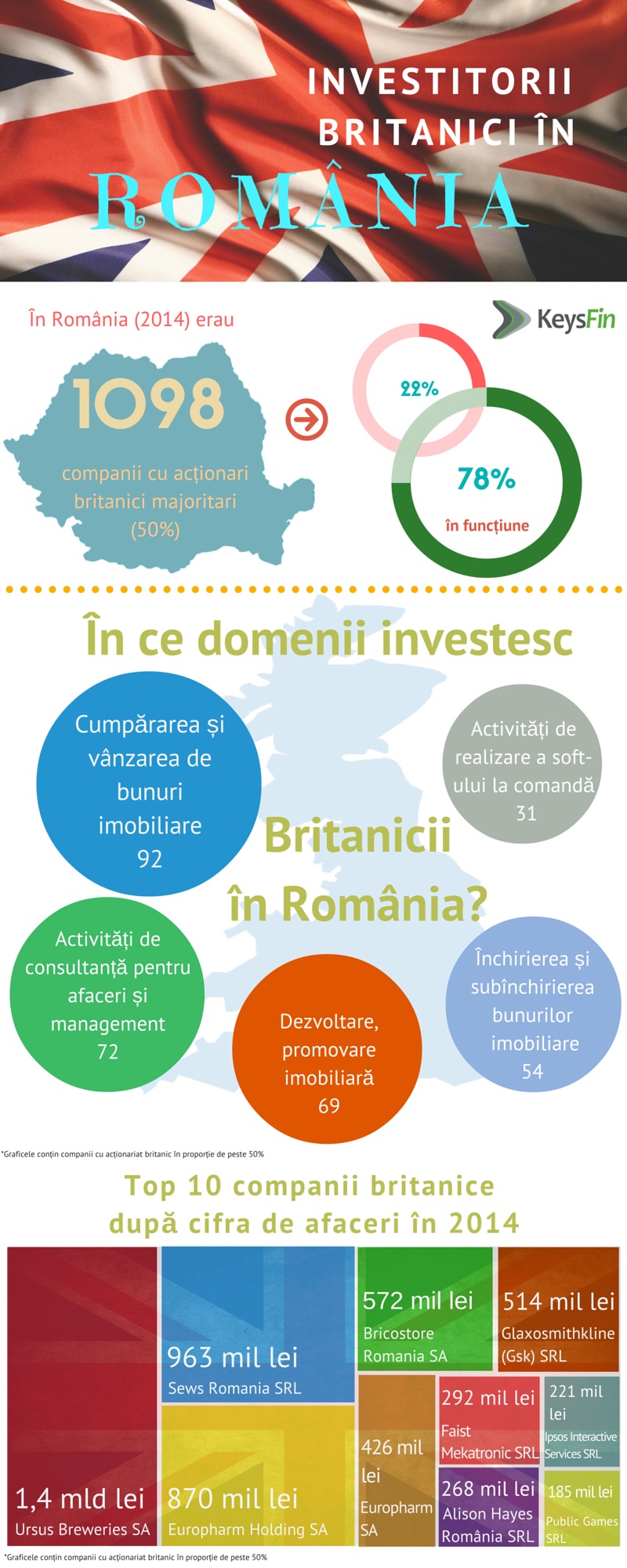 „Prezenta investitorilor britanici este una extrem de activa si sustinuta in multe domenii de activitate”, spun analistii de la Keysfin.