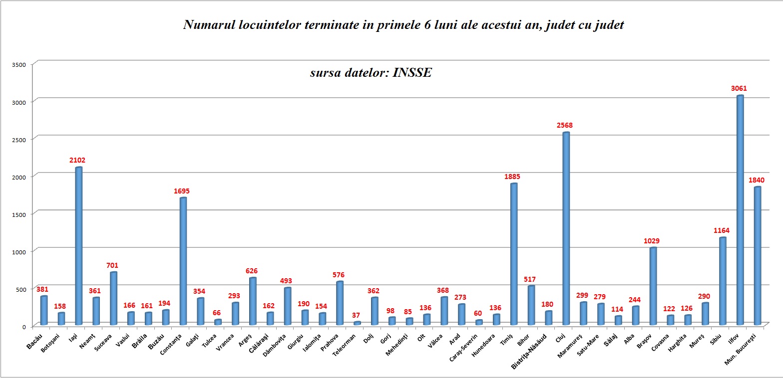 Vezi mai jos numarul locuintelor terminate in primele 6 luni, judet cu judet.