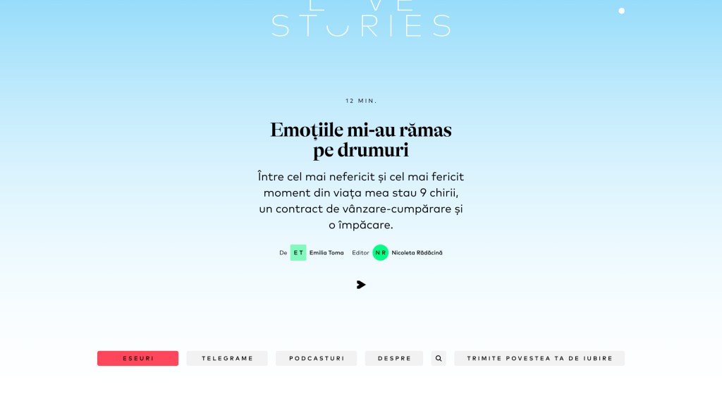 Acest text face parte din proiectul UNFINISHED LOVE STORIES – o platformă editorială ce publică povești reale despre iubire în sens larg. În fiecare duminică dimineață, vei putea citi pe Hotnews.ro și pe unfinishedlove.ro o nouă poveste ce dă iubirii o nouă valență. Dacă ai și tu o întâmplare adevărată, unică și imperfectă, care explorează universul relațiilor contemporane, trimite-o către echipa editorială.