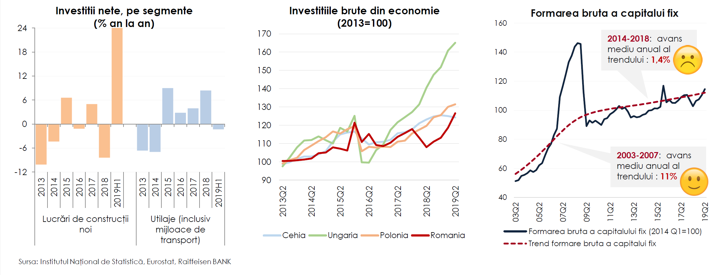 - Dacă ne uităm la factorii creșterii economice, consumul rămâne motorul acestei creșteri. Partea bună este că de la începutul anului investițiile și-au mai revenit puțin. Exporturile stagnează sau chiar scad. Dacă ne uităm mai atent la investiții o să vedem că am avut o creștere a investițiilor pe componenta de construcții în timp ce componenta de utilaje a scăzut Deci am putea spune că investițiile cresc mai degrabă în zona speculativă și mai puțin în zona productivă în comparație cu alte state