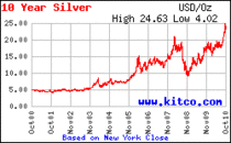 Recordul absolut al pretului argintului este de 49,50 dolari uncia şi a fost atins în ianuarie 1980. În ultimii doi ani, preţul argintului a crescut cu 145%, în vreme ce aurul nu s-a scumpit decât cu 85%. E drept, asta se datoreaza si volatilitatii mai ridicate a argintului, acesta reactionand mai “emotiv” la semnalele pietei. O