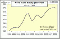 chestiune interesanta este faptul ca desi oferta mondiala creste (productia de argint), pretul continua si el sa urce. Anul trecut producţia mondială de argint a fost estimată la 688 milioane de uncii, adică circa 21 400 tone. In plus, piaţa fizică a argintului este puternic excedentară.