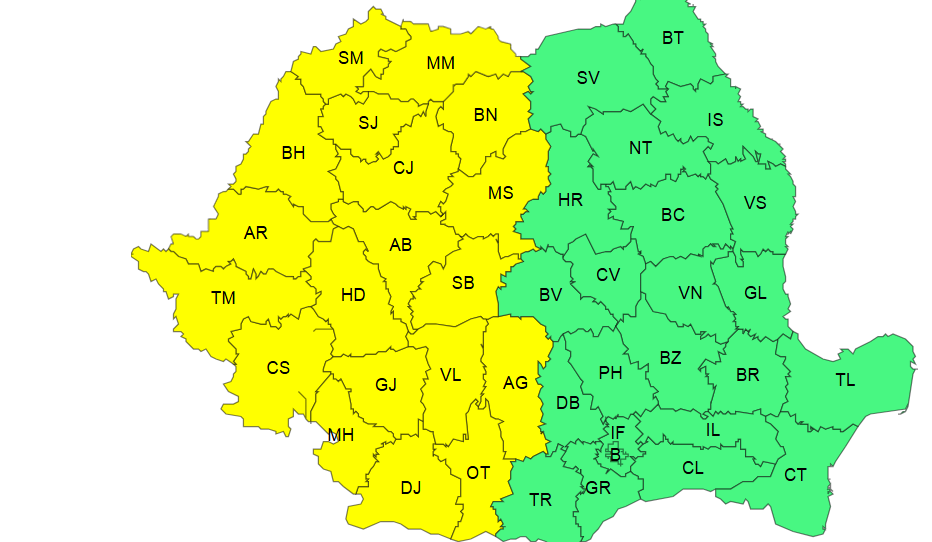 Vizate de alerta meteo sunt județe din Oltenia, Banat, Crișana, Maramureș, cea mai mare parte a Transilvaniei și în nord-vestul Munteniei.