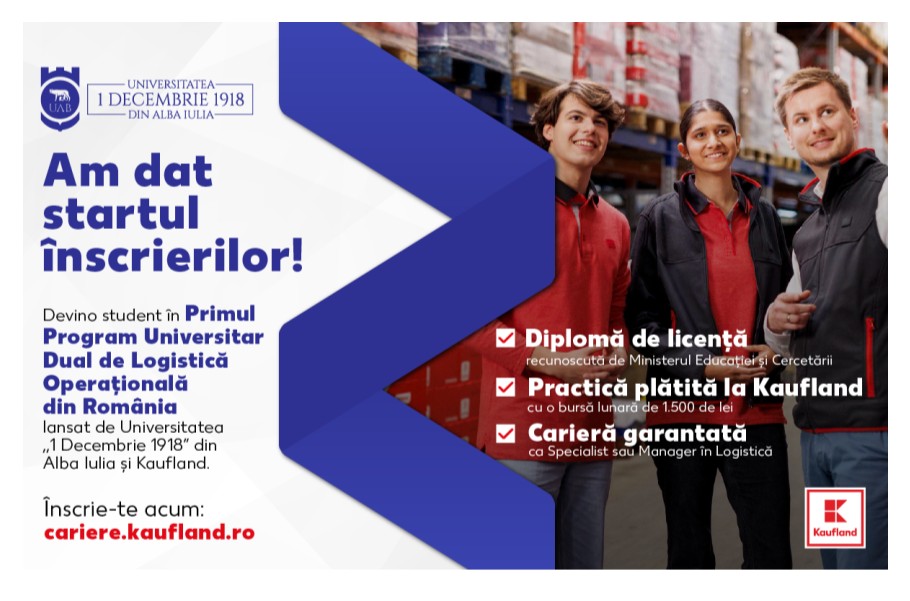 Kaufland România, în parteneriat cu Universitatea „1 Decembrie 1918” din Alba Iulia, lansează în premieră în România programul de Studiu Dual Universitar în Logistica Operațională în cadrul Facultății de Științe Economice – un proiect educațional cu structură aplicată, care îmbină pregătirea academică oferită prin cursurile universitare cu formarea practică desfășurată direct în companie, încă din timpul studiilor.