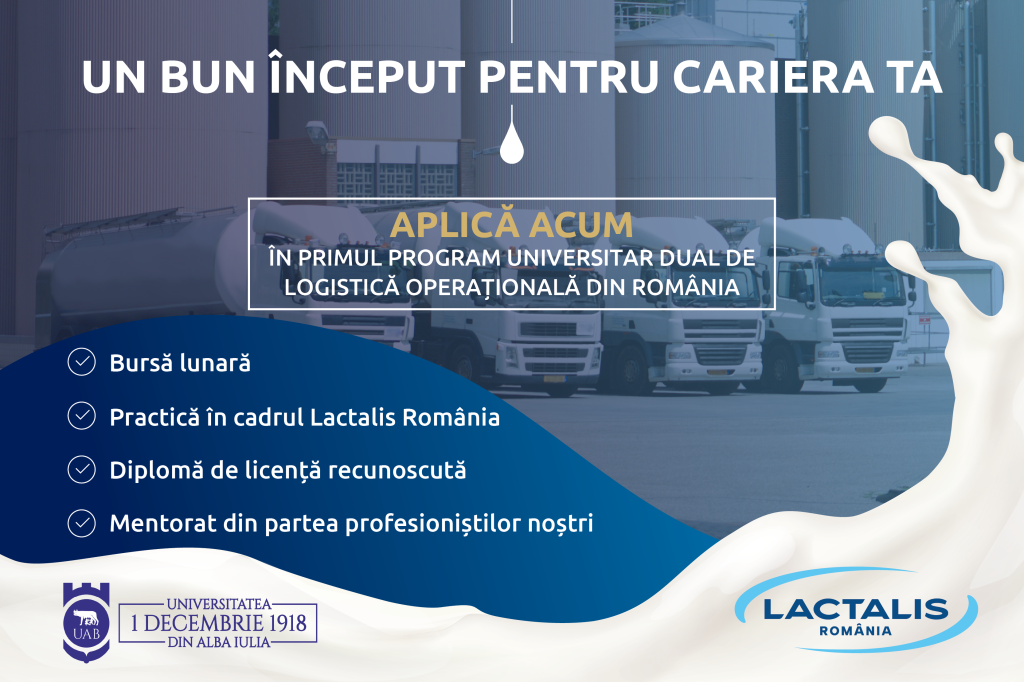Într-un context economic în continuă schimbare, în care companiile caută tot mai mult profesioniști pregătiți practic, Lactalis România, lider în industria lactatelor și Universitatea „1 Decembrie 1918” din Alba Iulia lansează un program universitar cu adevărat inovator: pregătirea tinerilor, încă din perioada studenției, în Logistică Operațională (DUAL), singura specializare de acest tip din România.