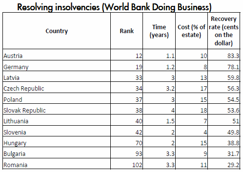 Acest fapt a facut ca Romania sa aiba una din cele mai inalte rate a creditelor neperformante din lume: 21%. BCR, prima banca din sistem, are aproape 30% credite neperformante. Care este valoarea acestora? Nu stim. Reglementarile contabile le impiedica pe banci sa le actualizeze valoarea asa cum ar fi logic din punct de vedere economic. Nu e de mirare ca in aceste conditii bancile apar ca obtinand profit! In acelasi timp, reglementarile prudentiale le-au obligat pe banci sa provizioneze aceste active, astfel incat bancile au imobilizat sume enorme de bani. Sistemul este evident ineficient. Pe de o parte nu putem descoperi valoarea reala a unor active; pe de alta parte capitalul este blocat pentru acoperirea previzionata a pierderilor.