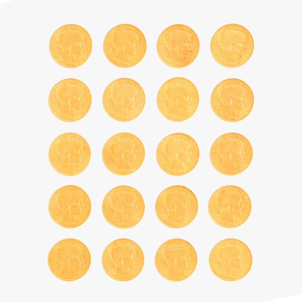 De la bijuterii și ceasuri spectaculoase la monede istorice și lingouri de investiție, selecția acestei licitații reunește peste o sută de piese cu o dublă vocație – și estetică, și patrimonială. Printre vedetele sesiunii se remarcă o impresionantă poșetă de bal din aur alb și galben – decorată cu o coroană de diamante (realizată în anii ’70), ce are un preț de pornire de 15.000 de euro, o placă din aur brut de peste 200 de grame – a cărui licitație începe de la 14.000 de euro, 20 de monede de 20 Franci – A III-a Republică Franceză, 1906 – cu start de la 13.000 de euro, precum și câteva lingouri de aur – spre exemplu un lingou din aur 24K, 20g, sigilat (prezent în eveniment de la 1.500 de euro). Pot participa la această licitație de aur toți cei care și-au făcut un cont de colecționar pe artmark.ro.
