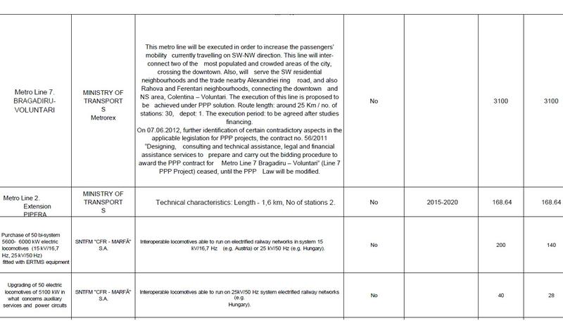 Romania a transmis Comisiei Europene o lista cu peste 200 de proiecte, in valoare totala de 62,5 miliarde de euro, care sa fie finantate cu ajutorul noului mecanism de finantare initiat de presedintele Comisiei Europene, Jean Claude Juncker, pentru perioada 2015-2017. Cel mai mare proiect propus depaseste 7 miliarde de euro si vizeaza constructia de austoastrazi, intre propuneri regasindu-se si o a 7-a magistrala de metrou – Voluntari-Bragadiru.