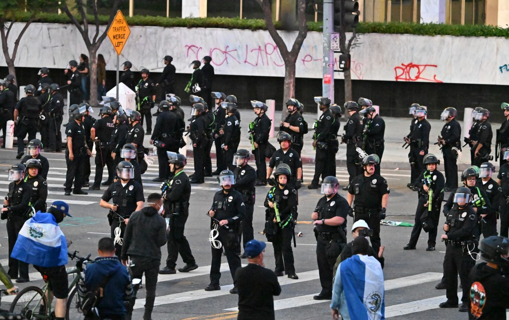 „Mai multe grupuri au continuat să se adune pe strada 1, între Spring şi Alameda. Aceste grupuri sunt gestionate şi au început arestări în masă”, a transmis LAPD pe reţeaua X.