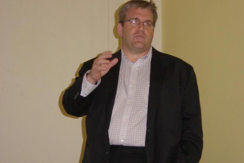 Lungul drum spre Casa Alba. Dean Thompson, adjunctul ambasadorului SUA in Romania, prezinta liceenilor din Arad sistemul de vot american