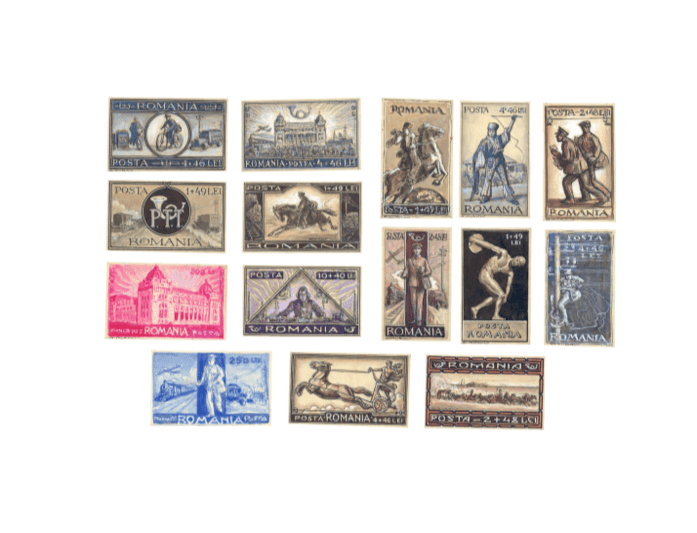O colecție la care râvnește orice filatelist! Este vorba despre o serie de machete originale realizate, atât în vremea regalității, cât și în perioada comunismului, în vederea imprimării mărcilor poștale, printr-un desen splendid de mâna unuia dintre cei mai valoroși graficieni, ilustratori și creatori de bandă desenată de la noi, Ary Murnu (1881-1971).