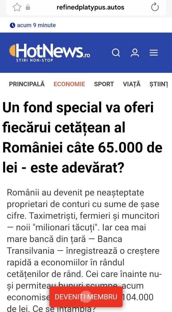 „Pagina oficială a unuia dintre cele mai cunoscute site-uri de știri din România a fost clonată și este prezentat un interviu fals cu unul dintre directorii unei bănci din România. În acest interviu fals li se prezintă cetățenilor o oportunitate extraordinară de a câștiga zeci sau sute de mii de lei ca pensie cu o investiție minină de 1.300 de lei”, spune un reprezentant al MAI, pe pagina de Facebook a instituției.
