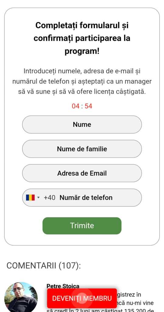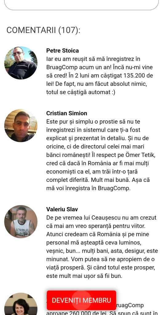 Pentru credibilitate, cei din spatele tentativei de escrocherie au atașat comentarii false ale unor persoane care spun că au participat la acest proiect și au câștigat sume mari de bani.