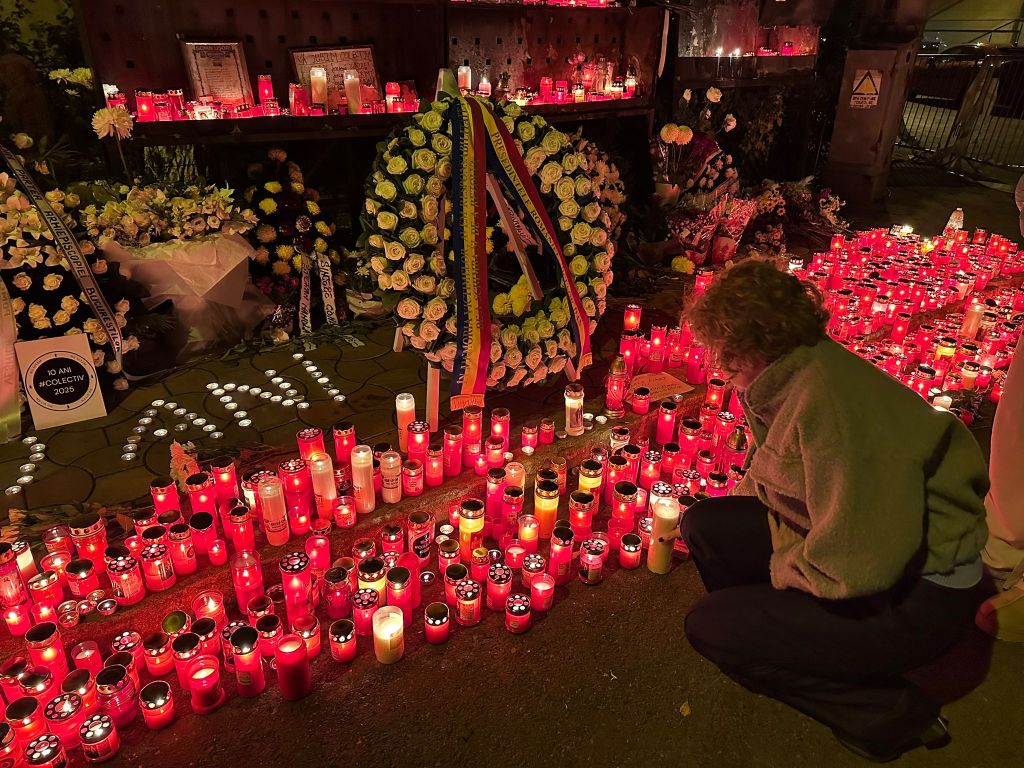 „10 ani, nicio lecție învățată” – este mesajul de pe o pancartă lăsată, la finalul marșului de comemorare, la locul fostului club Colectiv.