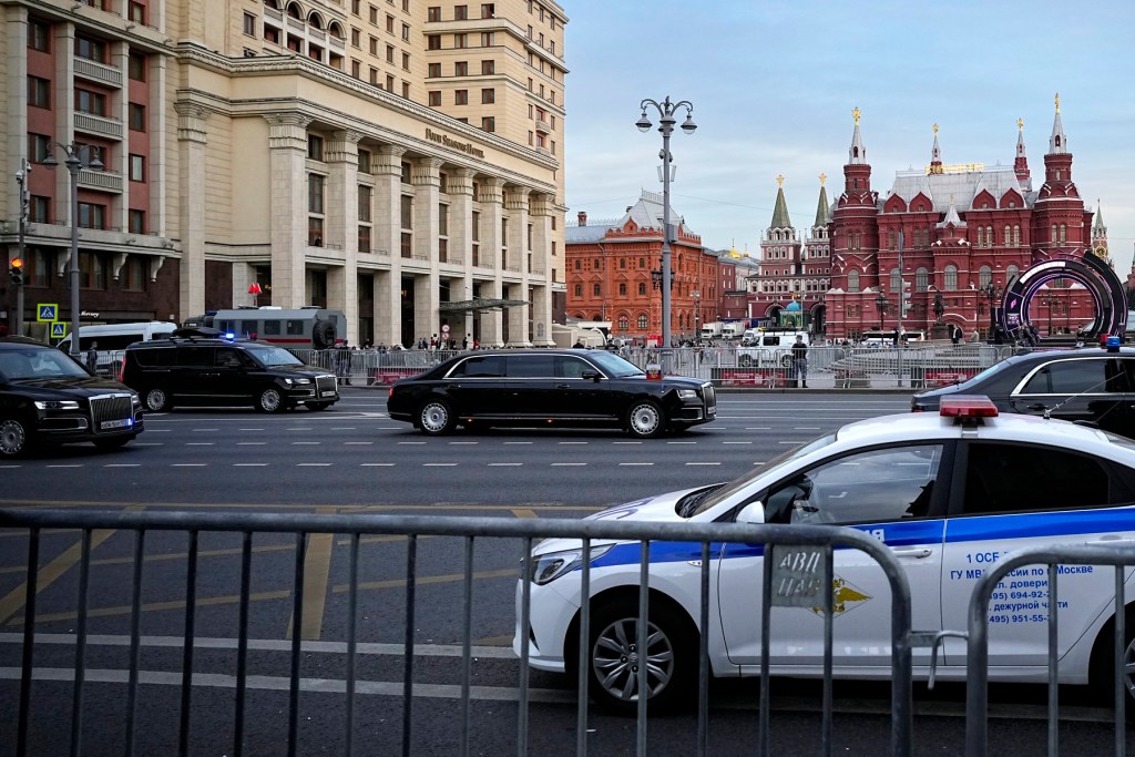 Coloana oficială a președintelui Vladimir Putin, fotografiată cu Kremlinul în fundal, FOTO: Associated Press / Profimedia