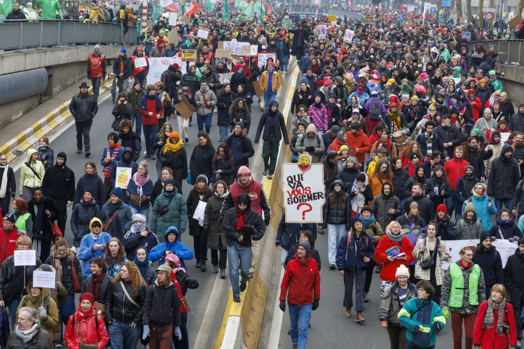 Mobilizarea – la apelul celor trei mari sindicate: creştin, socialist şi liberal – a fost de două ori mai mare decât cel de pe 13 ianuarie, când la Bruxelles au defilat 30.000 de persoane pentru a apăra serviciile publice şi pensiile.