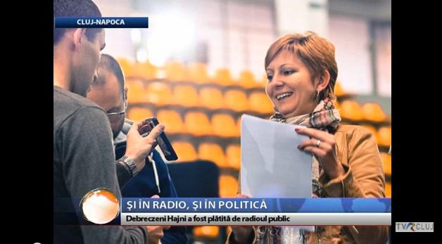 In descrierea materialului video publicat si pe Youtube, TVR Cluj mai noteaza: „Timp de cativa ani, ea a fost platita de radioul public, desi nu a realizat nici o emisiune si nu a semnat nici o zi in condica de prezenta. Mai mult, contractul de munca ii interzicea sa ocupe functii politice. Debreczeni Hajni face parte si din Consiliul de Administratie al Televiziunii Romane.”