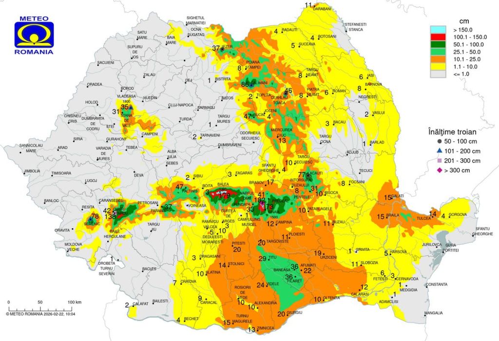 Cel mai mare strat de zăpadă este la Bâlea Lac (179 cm) și în Bucegi, la Vârful Omu (182 cm).
