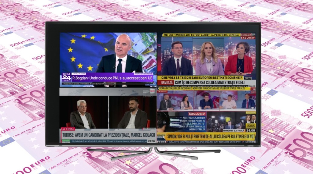 Zeci sau sute de mii de euro au plătit pentru o singură emisiune PSD, PNL sau AUR în campania pentru alegerile europarlamentare, dezvăluie o anchetă realizată de site-ul de investigații Snoop în parteneriat cu ONG-ul ActiveWatch. Realitatea Plus, televiziunea controlată de familia Păcuraru, a încasat de la cele trei partide peste 4 milioane de euro într-o lună. PSD a dat bani către șapte televiziuni pentru a-și promova imaginea și candidații, dar a refuzat să ofere vreo informație despre sumele plătite pentru fiecare post tv.