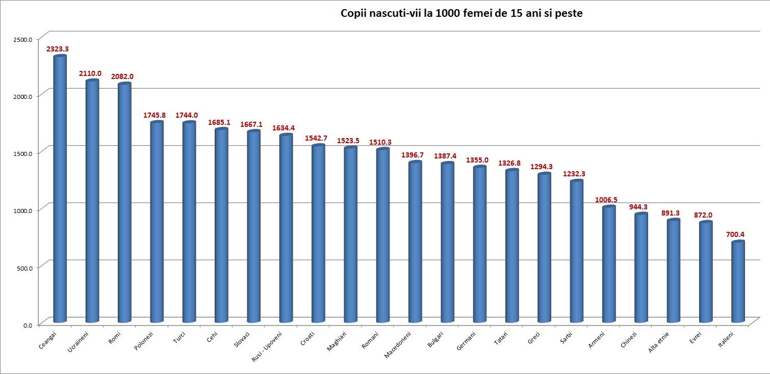 Mai jos aveti numarul copiilor nascuti la mia de femei, pe etnie: