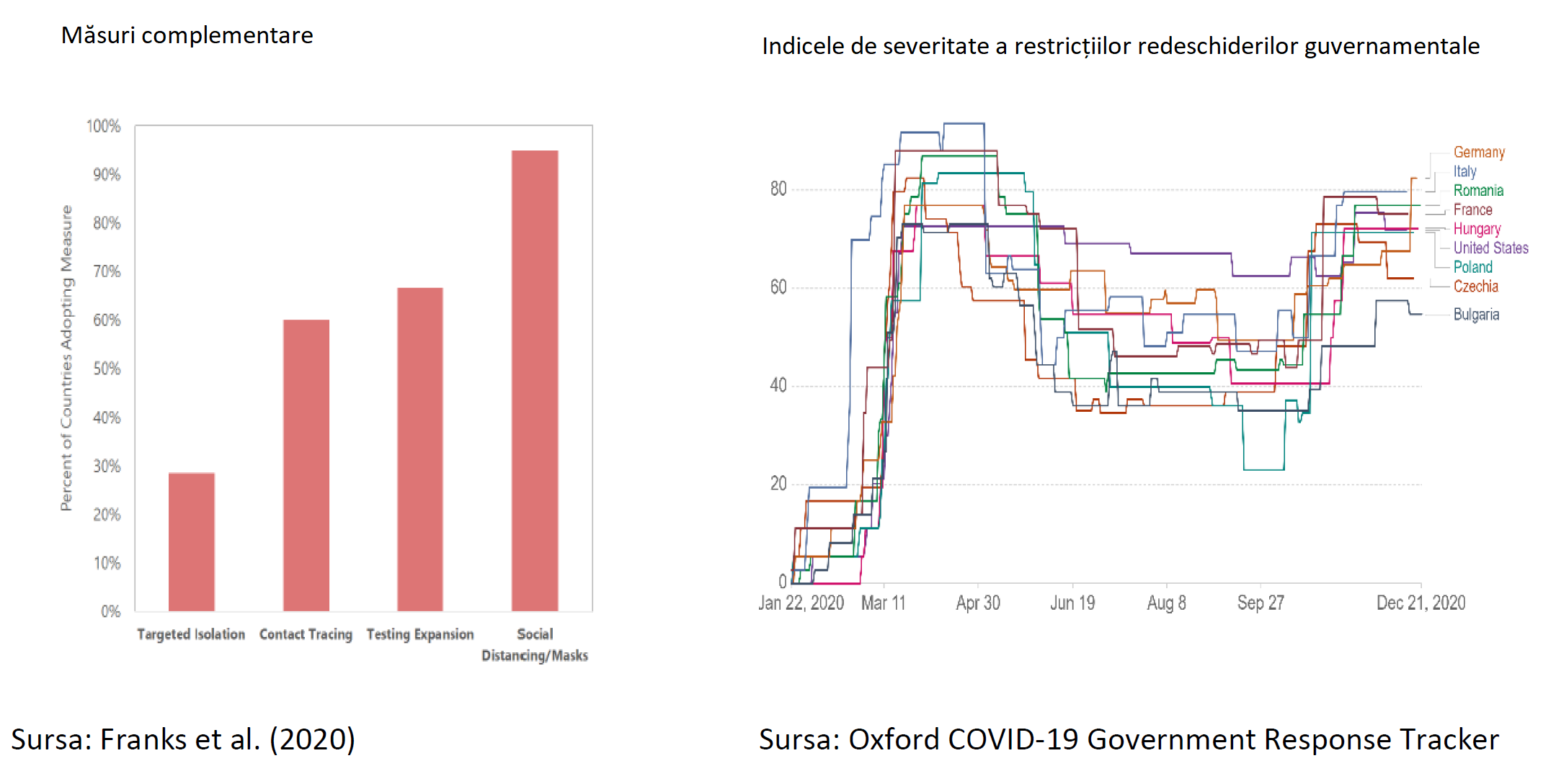 • Studiile arată că acțiunile guvernelor au efecte directe (restrictiile îi impiedică pe oameni să iasă din case) dar și indirecte (ridicarea reglementărilor semnalizează că activitatea este sigură). Într-un studiu publicat în august 2020, Glaser și colaboratorii au creat un model de învățare din dereglementare care arată că, în SUA, ridicarea restricțiilor referitoare la vizitele la restaurant au avut acest efect indirect de semnalizare a faptului că activitatea în sine este una sigură, ceea ce în unele state a condus la creșterea ratei de infectare. Autorii studiului au observat și un răspuns asimetric față de impunerea restricției. Astfel, impactul eliminării restricției a fost mai puternic decât cel al impunerii ei.