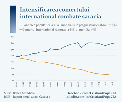 S-a ajuns aici pentru că globalizarea și liberalizarea comerțului au contribuit din plin la creșterea numărului locurilor de muncă și a calității vieții în țările în curs de dezvoltare, stimulând astfel investițiile, productivitatea și implicit creșterea economică. Este surprinzător faptul că încă există grupuri care promovează protecționismul, ce refuză evidențele, și asta pentru a “proteja” anumite categorii sau industrii față de care au un interes direct. Și fac asta în ciuda faptului că liberalizarea comerțului îmbunătățește nivelul de trai pentru întreaga societate și în special în rândul celor vulnerabili. Asta ne spune și infograficul de mai jos.