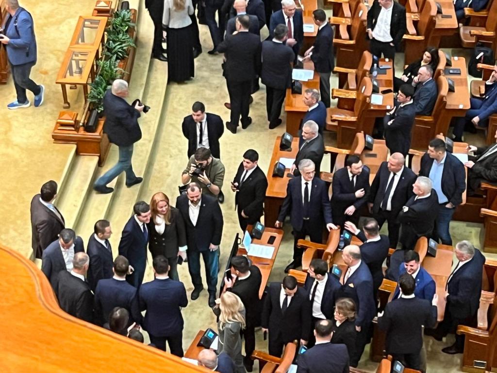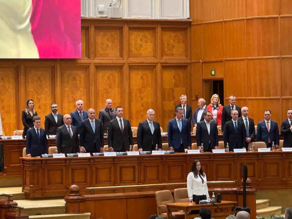 Ședința comună a Parlamentului a început cu intonarea imnului național. Din 463 deputați și senatori, sunt prezenți 312, atât fizic, cât și online.