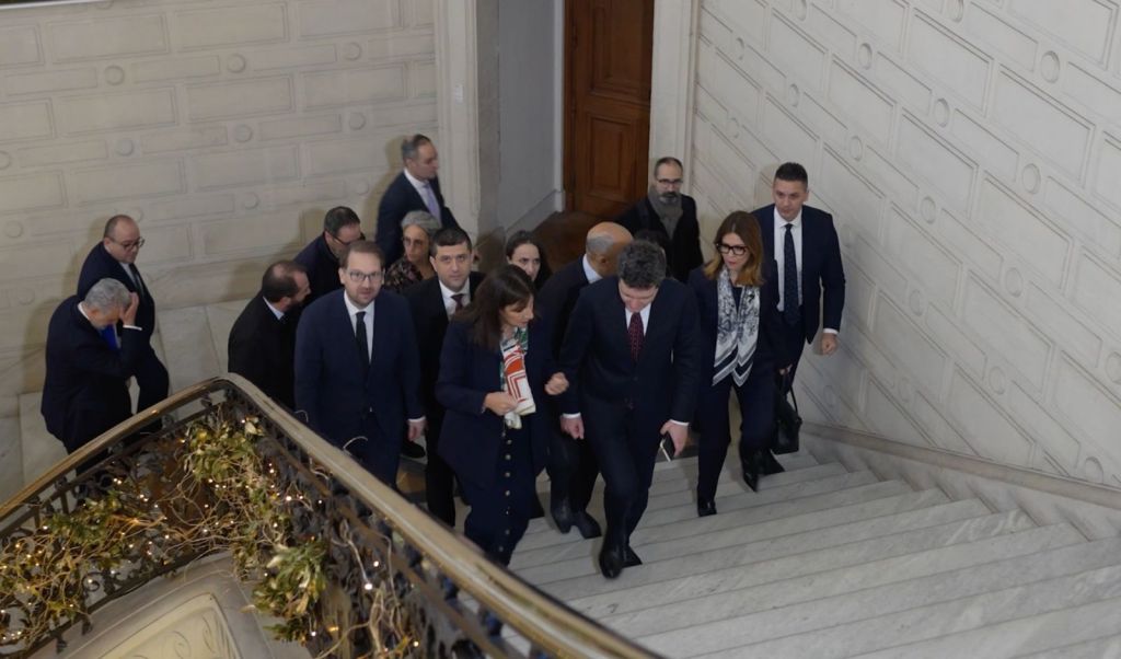 Din delegația șefului statului fac parte ministrul Afacerilor Externe, Oana Țoiu, ministrul Economiei și ministrul interimar al Apărării, Radu Miruță, și ministrul Finanțelor, Alexandru Nazare, alături de consilierii prezidențiali Marius Lazurca, Valentin Naumescu și Radu Burnete.