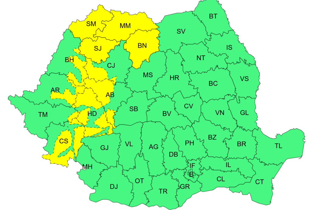 Astfel, în zona montană și submontană a județelor Caraș-Severin, Hunedoara, Timiș, Arad, Alba, Bihor, Satu Mare, Sălaj, Maramureș, Cluj și Bistrița-Năsăud, temporar vor fi precipitații însemnate cantitativ și se vor acumula 20…30 l/mp.