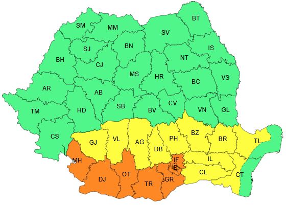 În sudul și vestul Olteniei, precum și în sud-vestul și centrul Munteniei, valul de căldură va persista, va fi caniculă, disconfort termic accentuat, iar indicele temperatură-umezeală (ITU) va depăși pragul critic de 80 de unități.