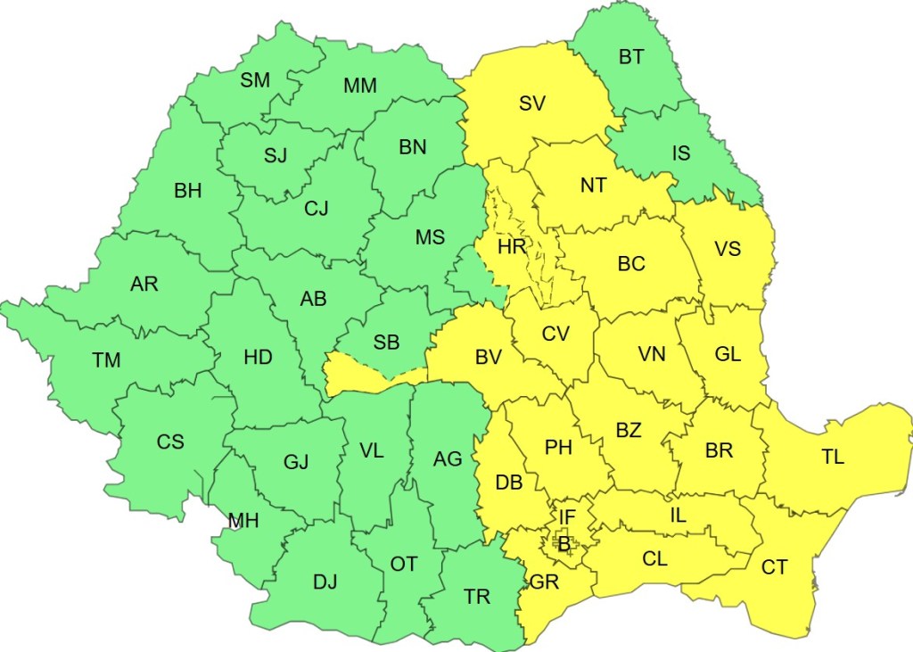 Administrația Națională de Meteorologie a emis un cod galben de ploi și ninsori pentru aproapte toată jumătatea estică a țării, avertizarea fiind valabilă până luni dimineață, ora 10:00.