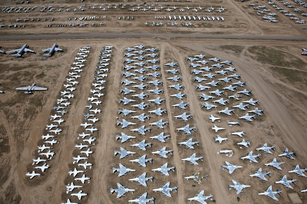 Cimitir de avioane în Tucson, Arizona. Fotografii de Shelley Dennis, Crackerclips și Michaelfitzsimmons / Dreamstime