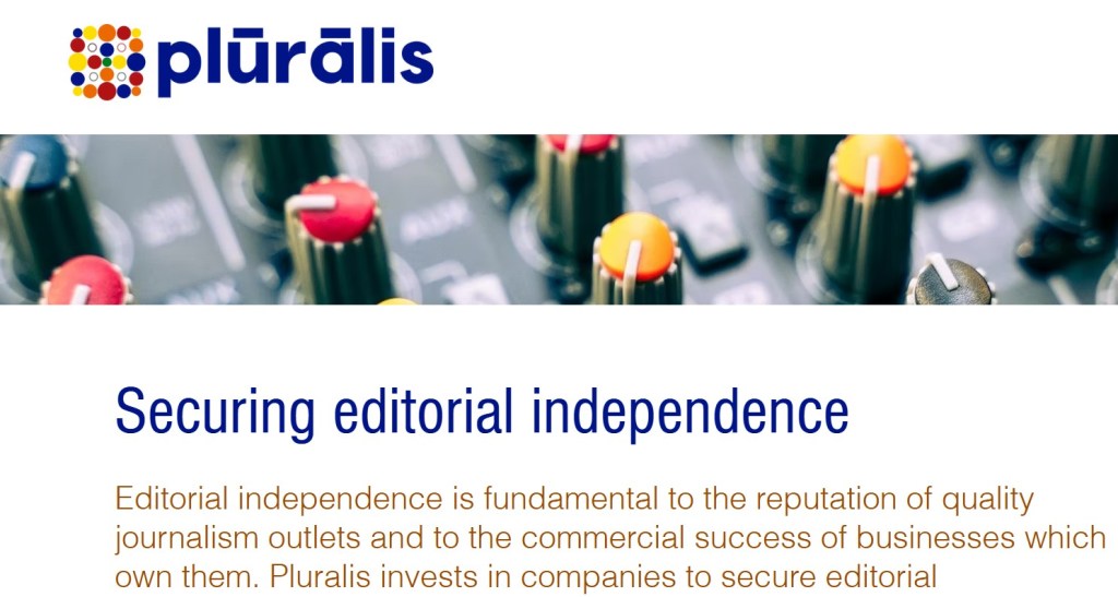 Pluralis este o companie din Olanda, specializată în investiții media, care susține că „facem investiții pentru asigurarea unei prese independente și dinamice în Europa”.