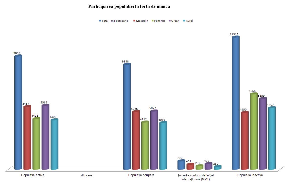 Populatia ocupata cuprinde toate persoanele de 15 ani si peste care au desfasurat o activitate economica producatoare de bunuri sau servicii de cel putin o ora in perioada de referinta (o saptamana), in scopul obtinerii unor venituri sub forma de salarii, plata in natura sau alte beneficii.