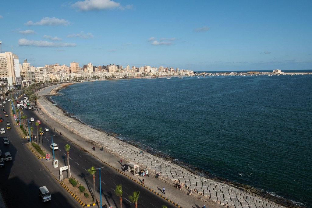 Cercetătorii afirmă că nivelul apei tot mai calde din Marea Mediterană urcă, parte dintr-un fenomen global determinat de schimbările climatice. În Alexandria, acest lucru duce la eroziunea coastei și la infiltrarea apei sărate prin substratul nisipos, subminând clădirile de la bază.
