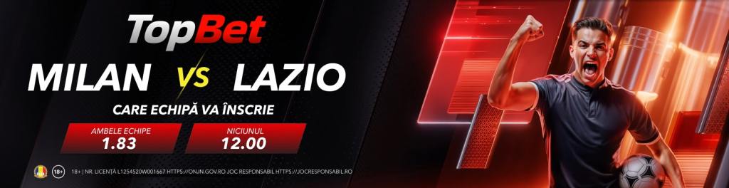 Într-un alt meci programat sâmbătă, dar de la ora 21:45, AC Milan primește vizita lui Lazio în Serie A. Milan este pe locul secund în clasament, la două puncte de liderul AS Roma. Lazio, în schimb, stă ceva mai prost și este pe locul opt. Meciurile dintre Milan și Lazio au fost echilibrate în ultimii trei ani, astfel că, deși Milan e favorită să obțină victoria, e posibil să fie un meci lipsit de strălucire. Cotele la pariuri sunt următoarele: