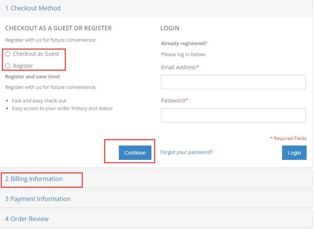 Mergeți la pagina de plată, continuați ca oaspete (sau creați un cont) și apoi completați „Informații de facturare”.