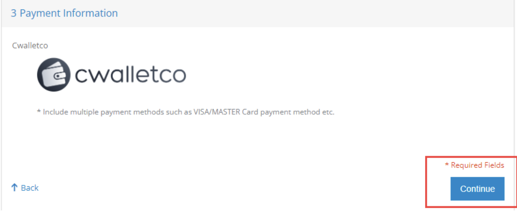 Vă rugăm să selectați „CWALLETCO” în acest pas, apoi faceți clic pe „Continuare”.