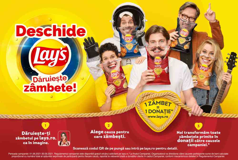 Prin campania „Deschide Lay’s. Dăruiește zâmbete!”, Lay’s își propune să aducă împreună consumatorii, partenerii din retail și ONG-uri din România pentru a face lumea să zâmbească. Acum este rândul tău să zâmbești pentru o lume mai bună: poți participa pe www.lays.ro, până pe 30.09.2021 sau în cadrul Caravanei Zâmbetelor, desfășurată pe litoral în perioada 10.07-8.08.2021.