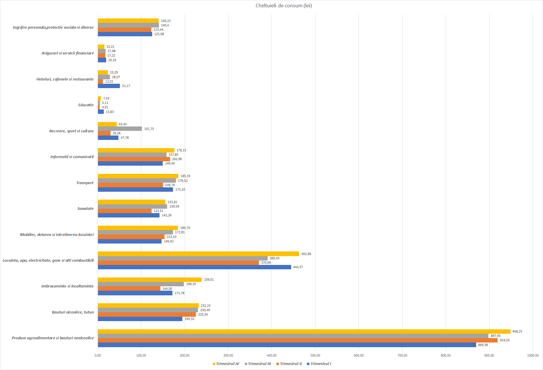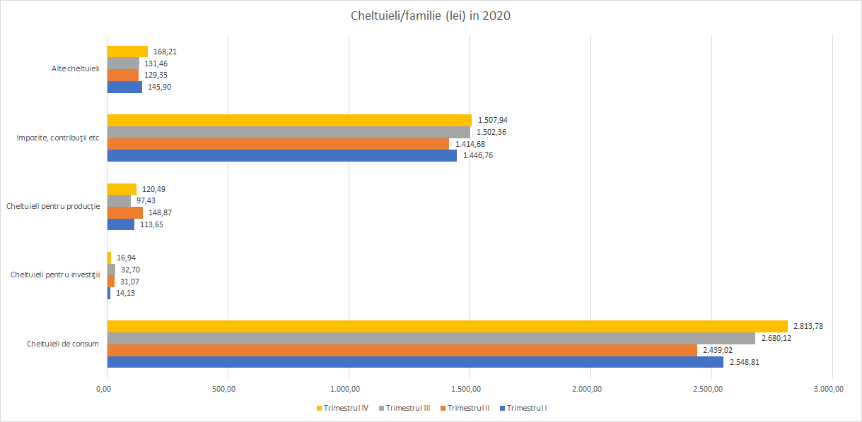 Mai jos, evoluția cheltuielilor de consum ale unei familii medii în 2020, defalcat pe trimestre: