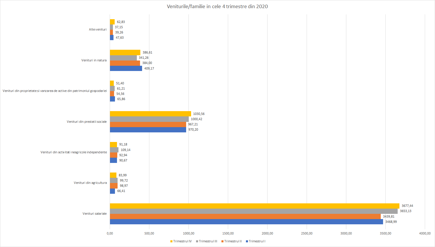 Mai jos, evoluția veniturilor salariaților, agricultorilor, șomerilor și pensionarilor în 2020, defalcat pe trimestre: