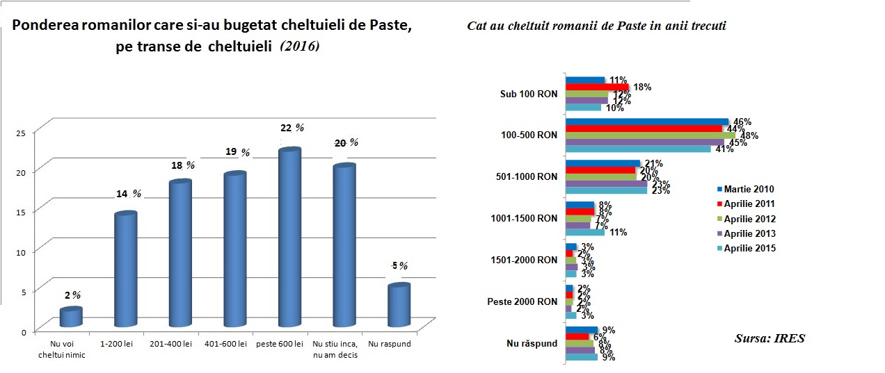 Iata mai jos intentia privind cheltuielile de Pastele Ortodox, asa cum apar ele in 2016, dar si in anii trecuti.