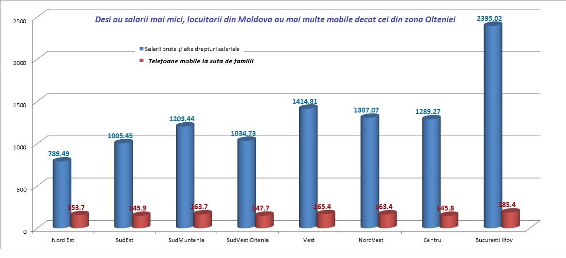 • 1. Desi au salarii mai mici, locuitorii din Moldova au mai multe mobile decat oltenii