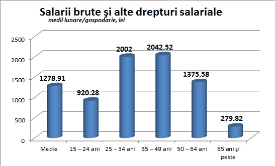 • Numarul mediu de salariati ce revine pe o gospodarie este de numai 0,765, ceea ce inseamna aproximativ opt salariati la zece gospodarii.
