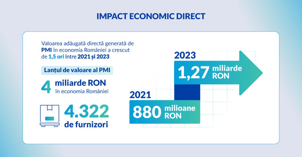 Valoarea adăugată directă generată în economia României a atins 1,27 miliarde RON, ceea ce reprezintă o creștere de 1,5 ori în comparație cu anul 2021.